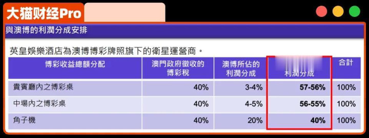 博彩税收走40%,澳博抽成4%左右,56%的收益,都归英皇,差不多一年12亿左右。
