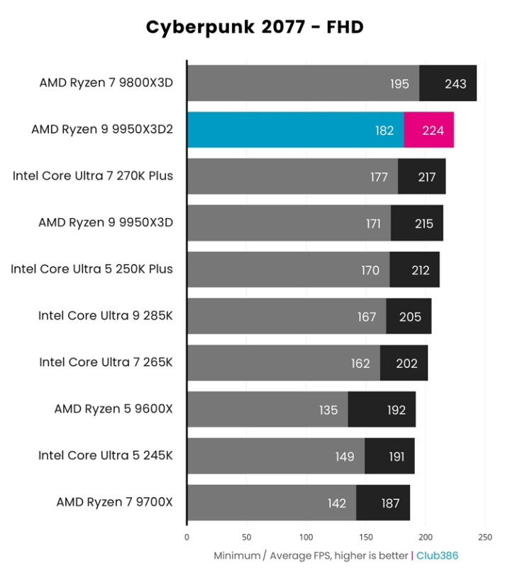 具体到游戏中,《文静6》略有超过,而像是《F1 25》这么的纯单线程游戏,领有双3D缓存的锐龙9 9950X3D2涓滴莫得什么上风,最低帧还过期锐龙9 9950X3D不少,而像是《赛博一又克 2077》这么关于GPU更严苛的游戏来说,锐龙9 9950X3D2也不如锐龙7 9800X3D,只消像《全面干戈:战锤3》这么的游戏才罕有帧的超过。