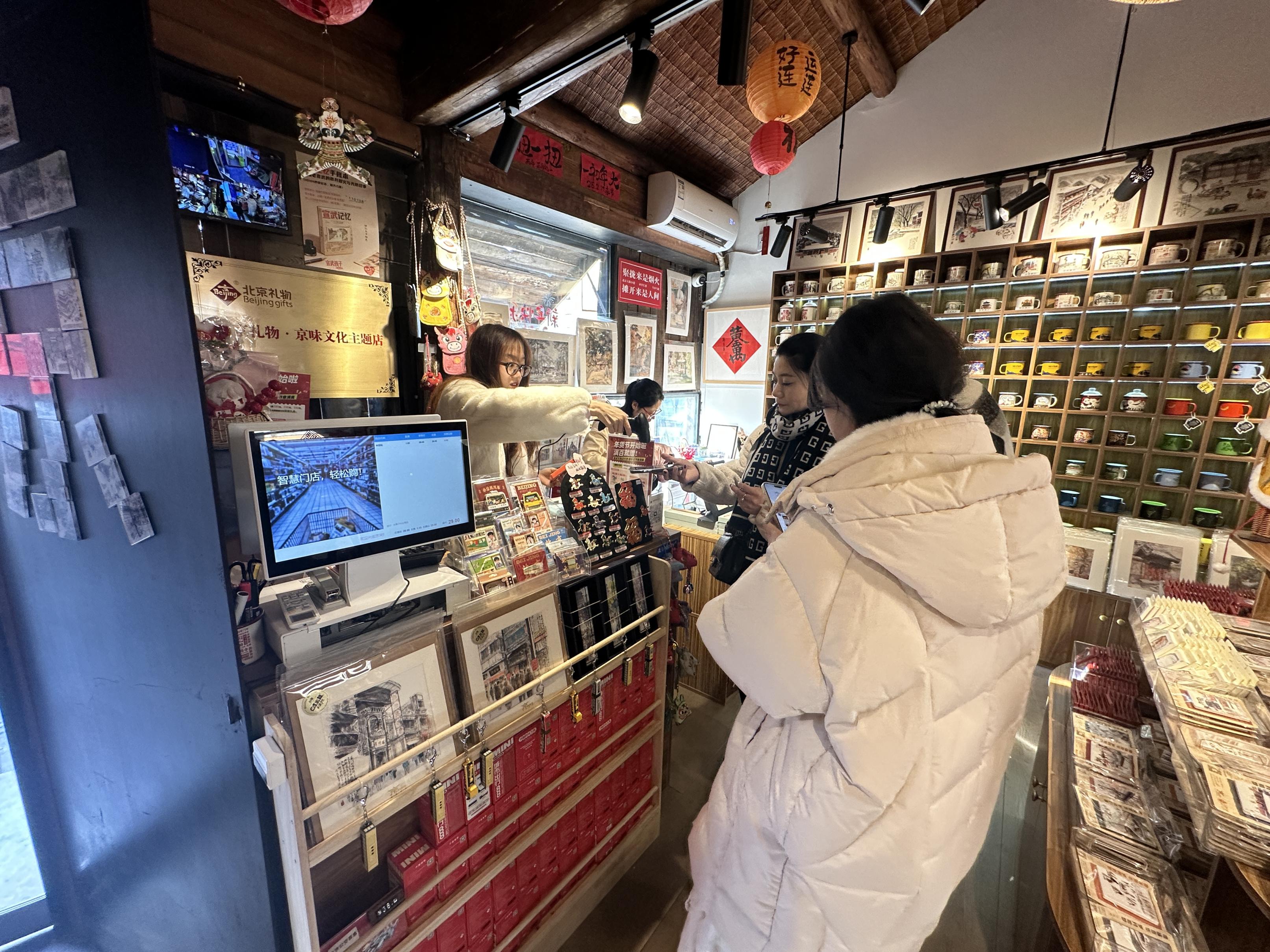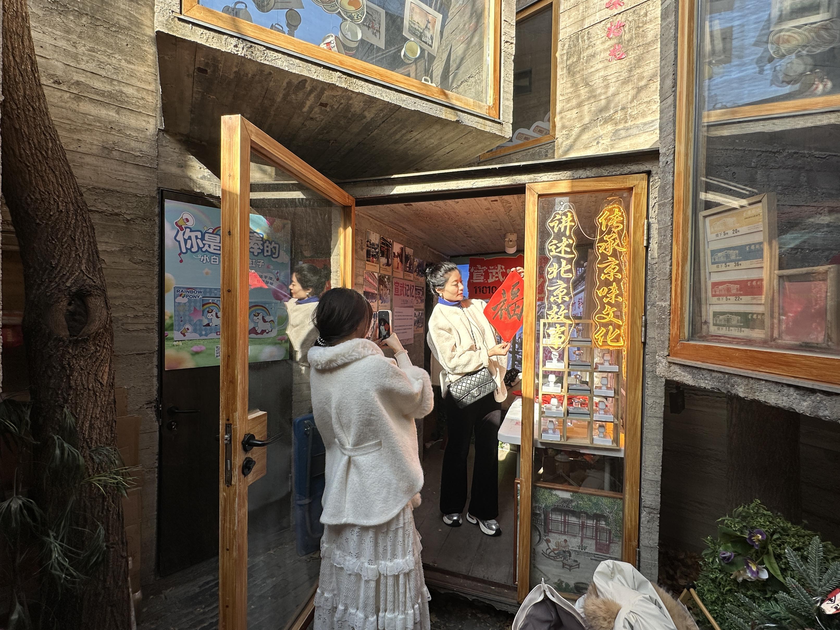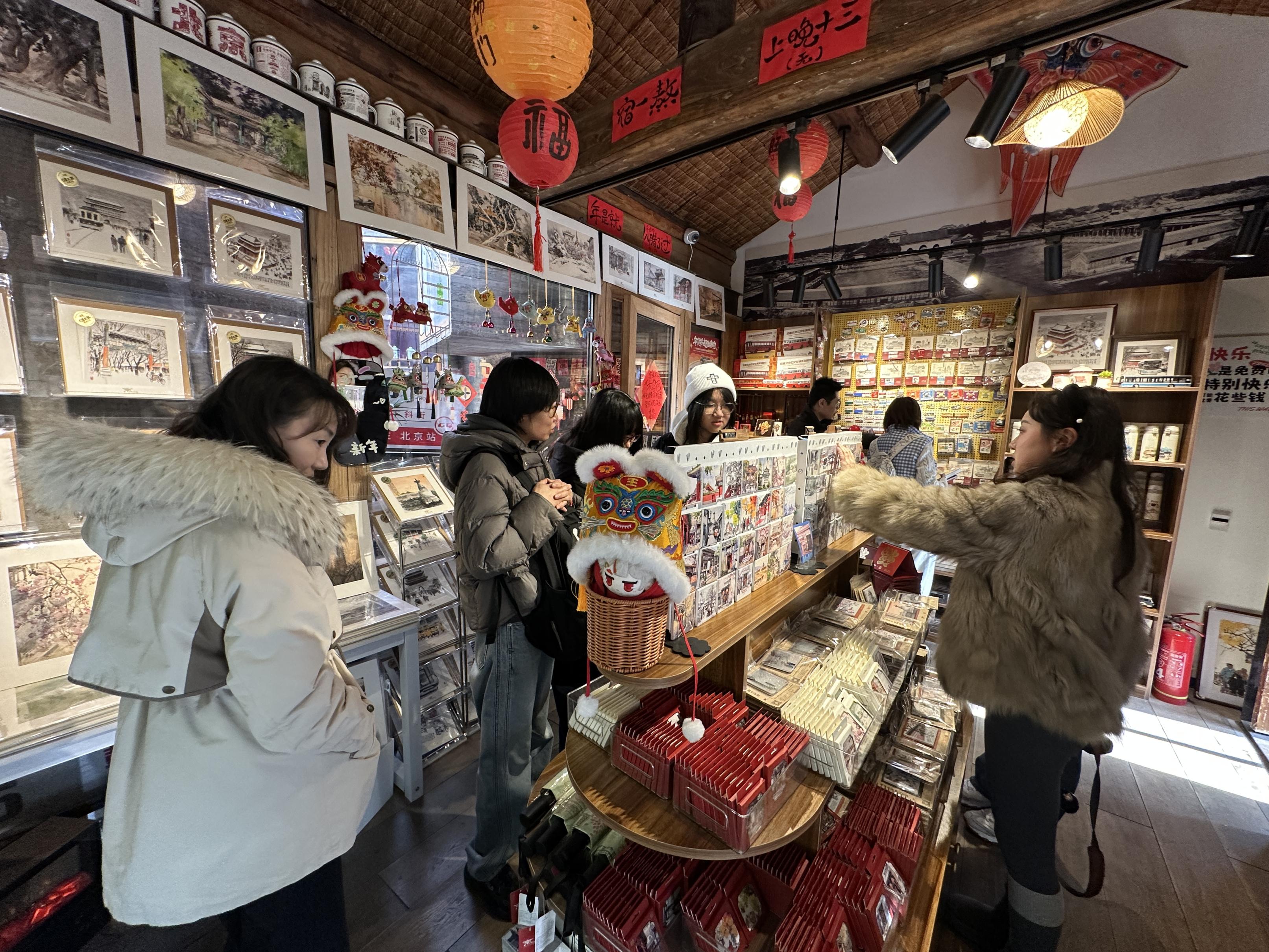 春节本事,作为体验老北京巷子文化的秉性透露,杨梅竹斜街上游东说念主如织,吵杂超卓。街上一家名为“京味拾光”的文创小店里天天东说念主气爆棚。作为“北京礼物”门店中首个聚焦京味文化的主题店,店里准备了各种会通京味元素与马年寓意的文创居品,眩惑着宣战旅客把独具秉性的北京礼物带回家。
