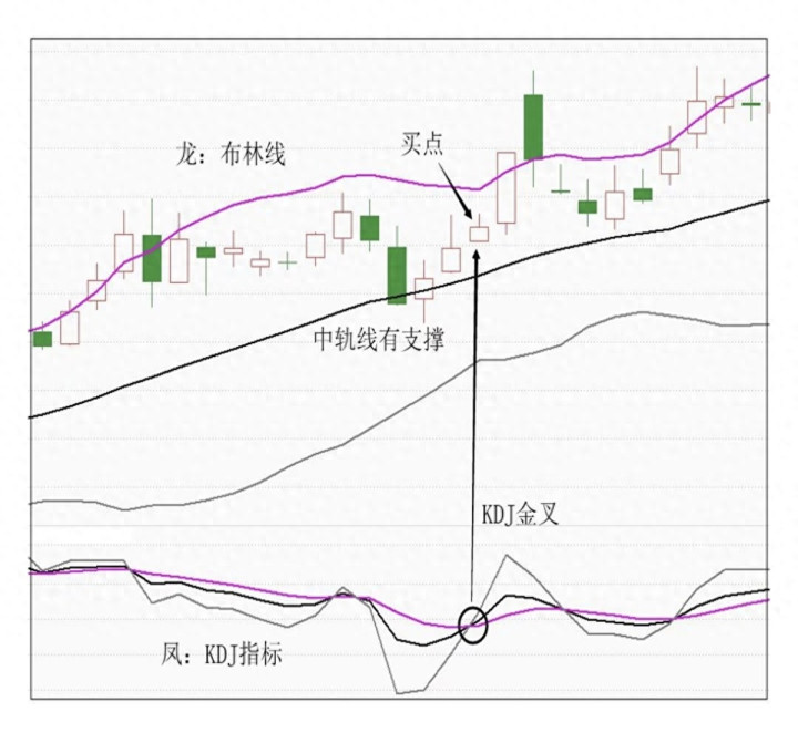 比如某只股票,在上升趋势中回调到布林线中轨,收出小阳线止跌,同时中轨线保持向上,随后KDJ出现金叉,这就是一个稳健的买点,后续往往会延续之前的上升趋势。