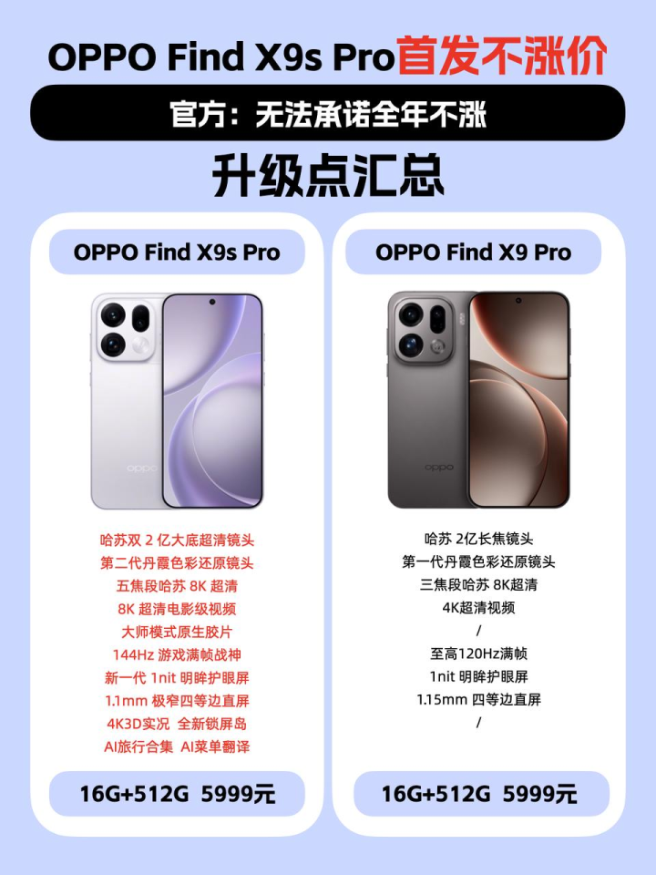 总的来说, Find X9s Pro比Pro多了很多升级,但不加价,16+512G大内存5999,隔邻只可买到iPhone17 256g,冲首发扫数可以吧?因为我顾忌背面加价。