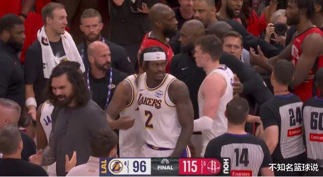 在比赛以湖东谈主96-115惨负界限之后,两边再度出现突破迹象,斯马特与伊森等东谈主还在彼此骂战,毕竟炸药味太浓厚。恶果裁判径直把现场灯给关了,用拉闸的口头强行让比赛界限。